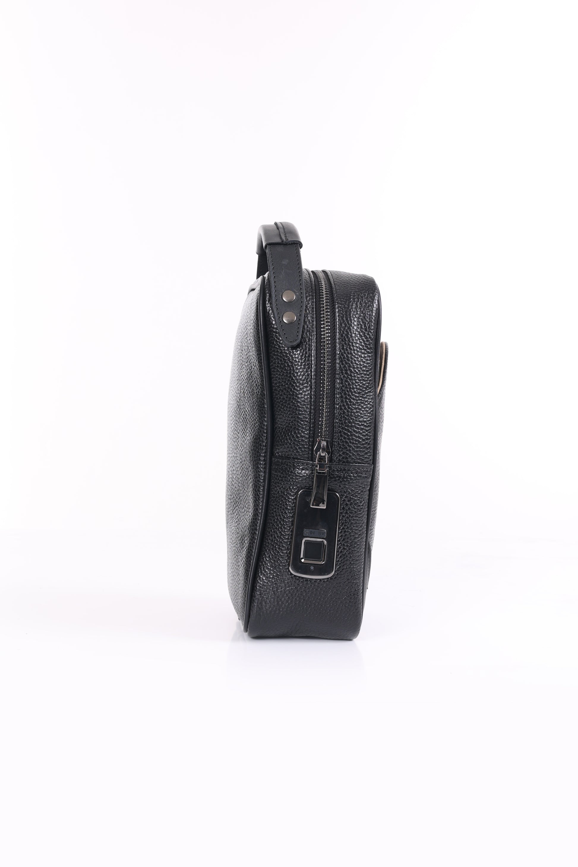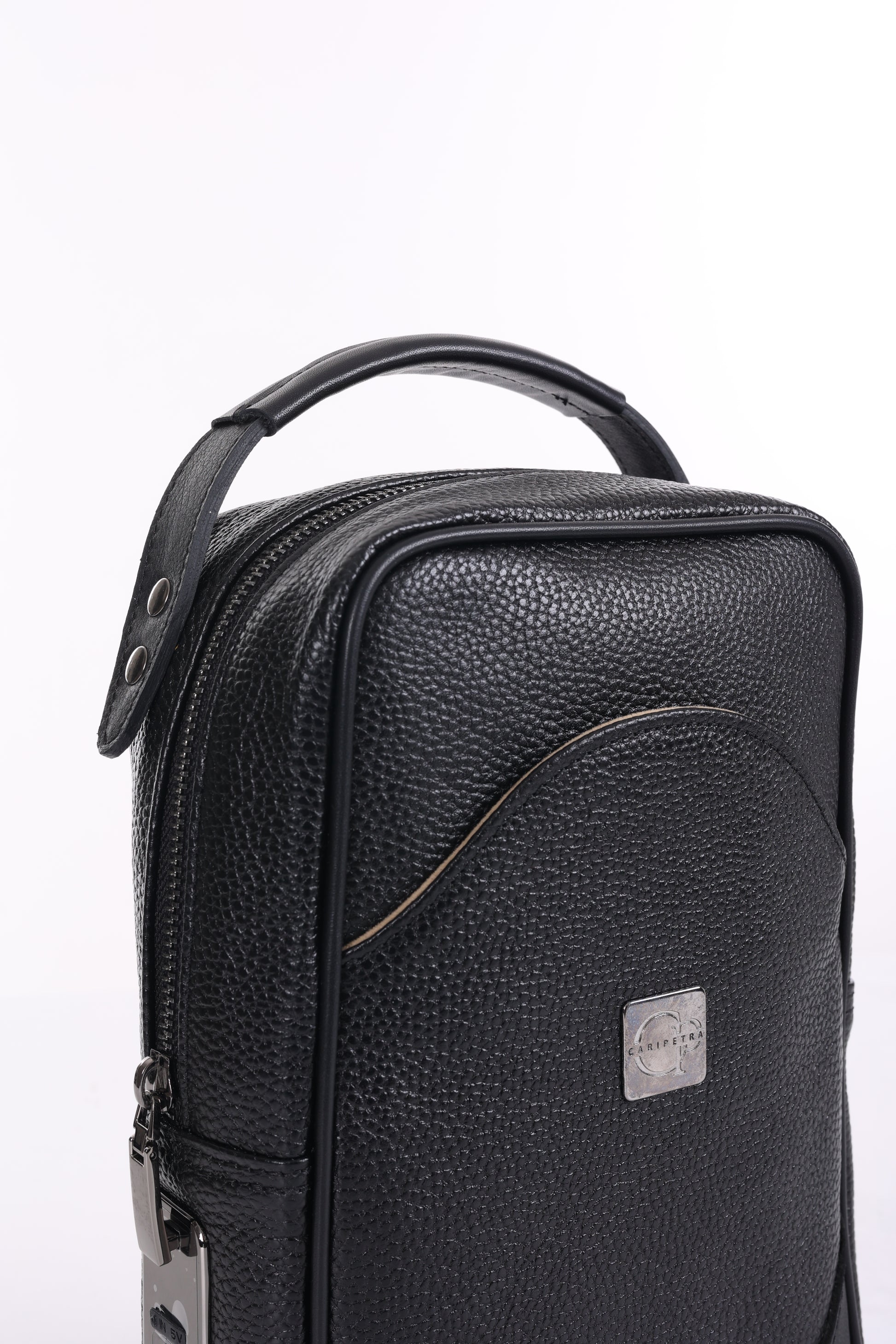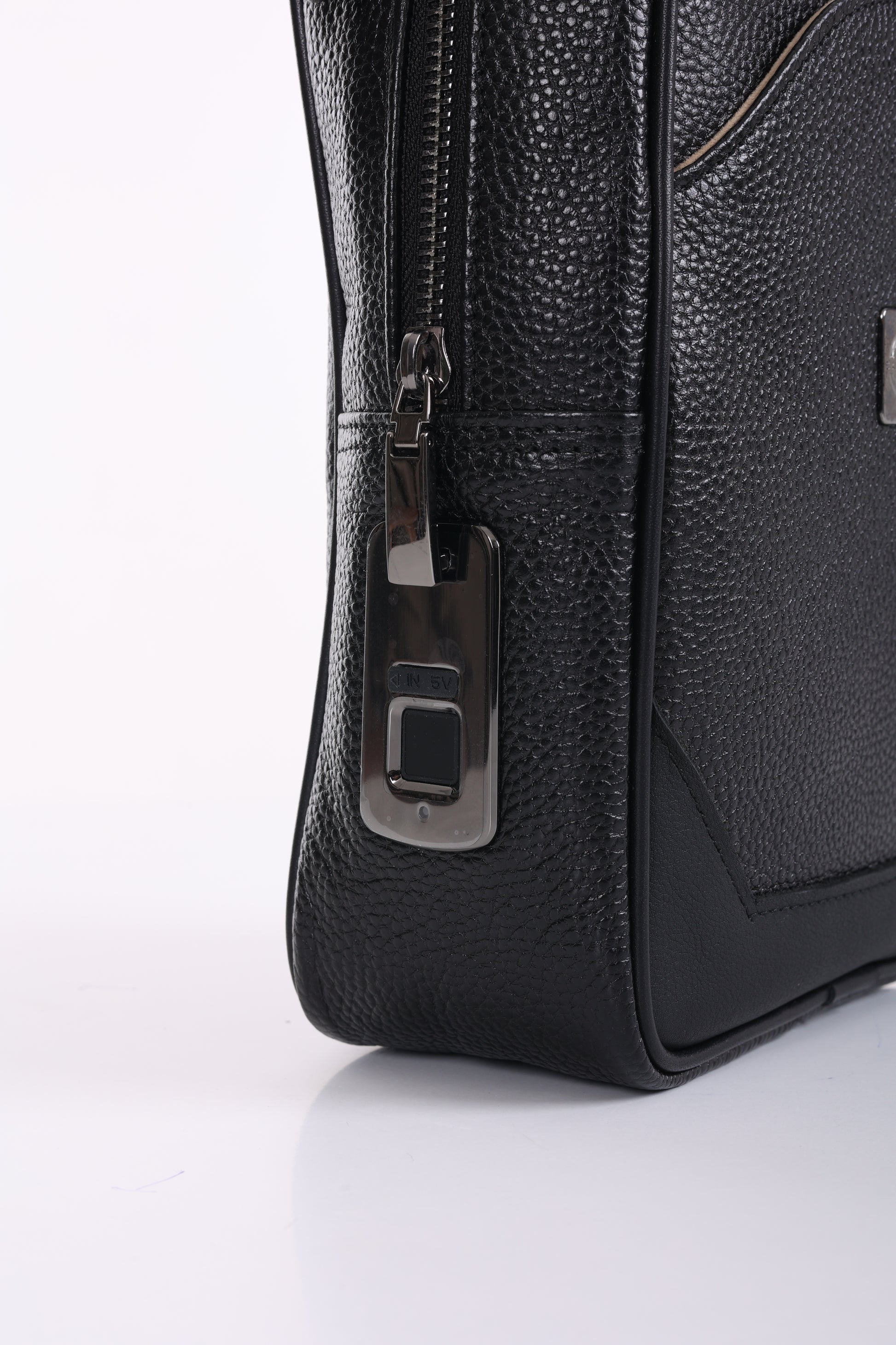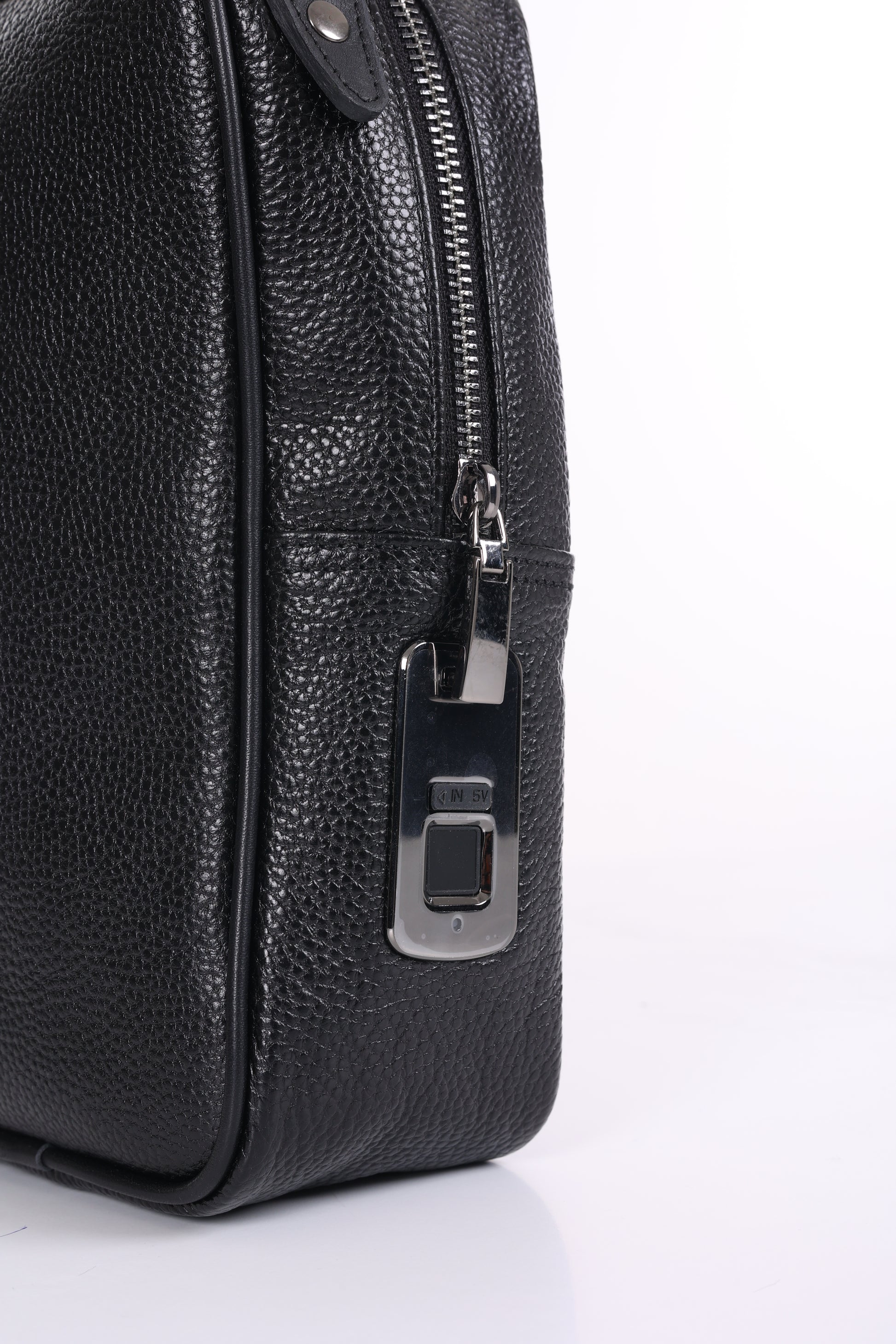 SENZA Parmak İzi İle Açılan Hakiki Deri Siyah El Çantası